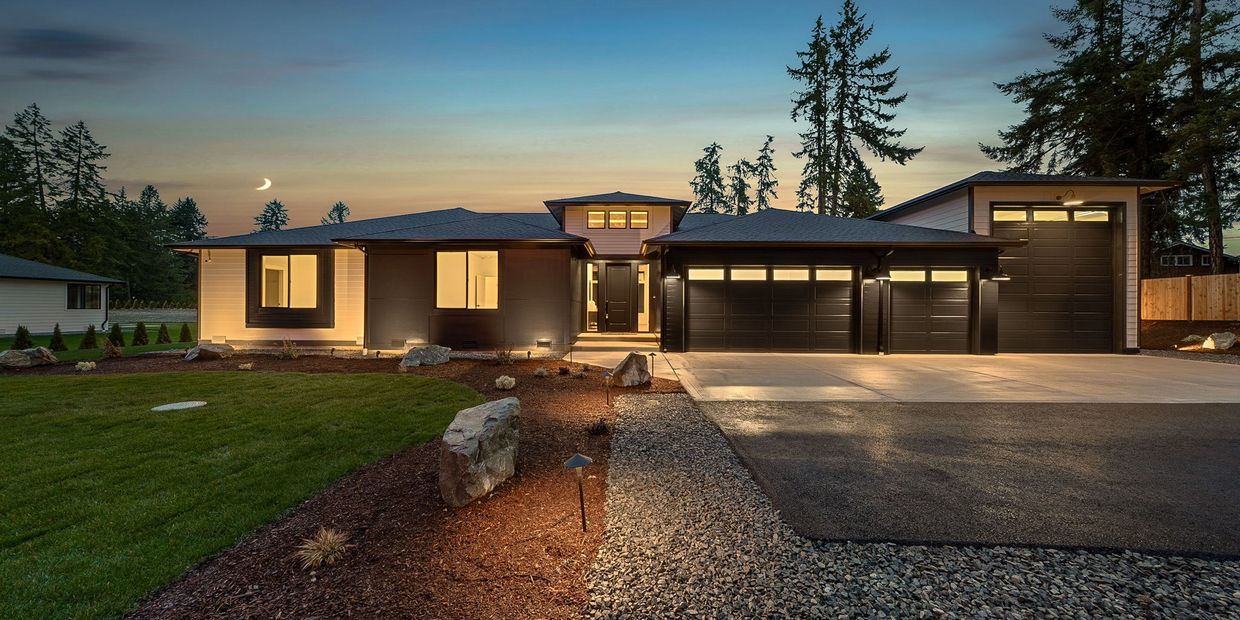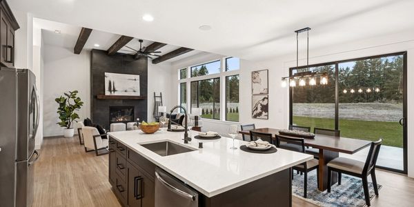 Custom Rambler For Sale on a private 2+ acre lot with RV garage in Spanaway! 😍 Modern luxurious finishes featuring: Custom floor-to-ceiling tile fireplace, Gourmet kitchen w/quartz counters, full quartz backsplash, 36" Forno range, Frigidaire appliance package, & convenient pot filler. Spa-like primary en-suite with quartz counters and soaking tub. RV garage 14' ceiling, EV car charger, workspace/storage, fully landscaped, back patio with BBQ stub. Imagine entertaining in this brand new home for the new year!